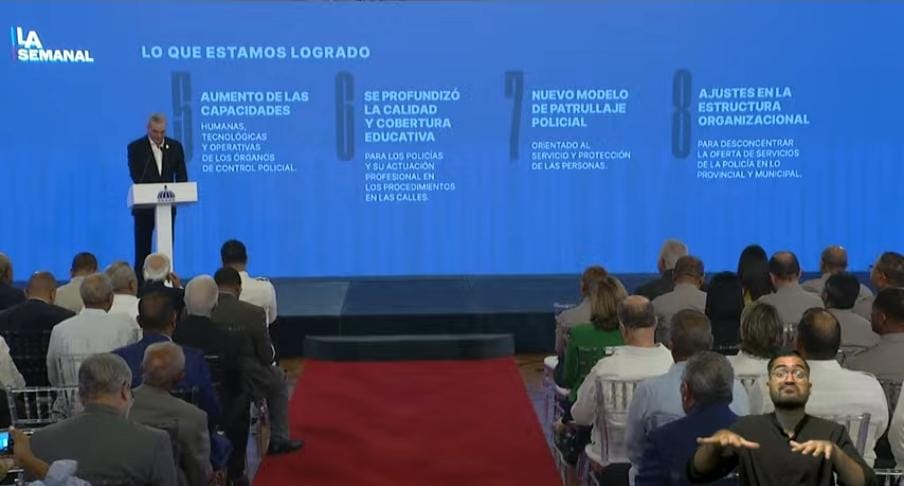 Santo Domingo. – El presidente de la República, Luis Abinader, durante el encuentro LA Semanal con La Prensa de este lunes, destacó los logros del sistema policial.