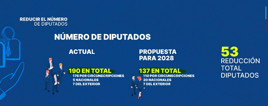La nueva propuesta realizada por Abinader en la Reforma Constitucional, es de 137 diputados, 110 por circunscripciones, 20 nacionales y 7 del exterior.