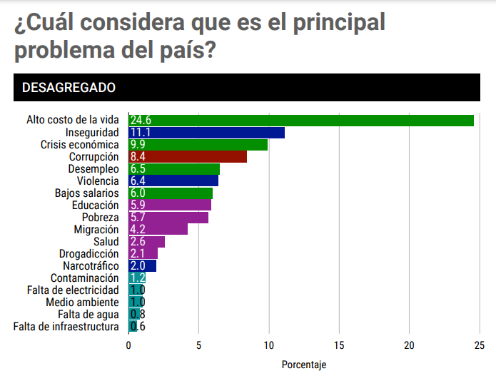 Alto costo de la vida, principal preocupación para el 24.6% de dominicanos