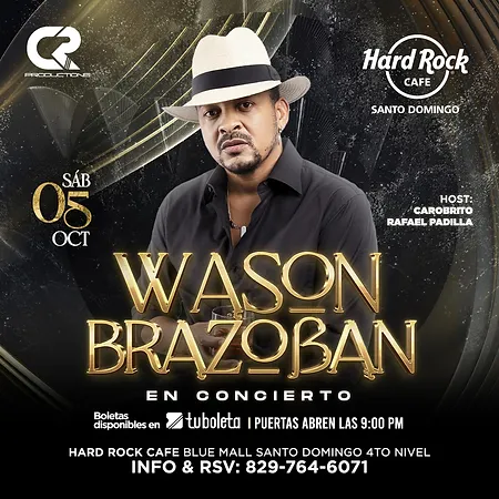 Wason Brazoban llega al Hard Rock Café Santo Domingo. Este concierto promete ser una experiencia inolvidable, llena de emociones y melodías que tocarán el corazón de todos los asistentes.