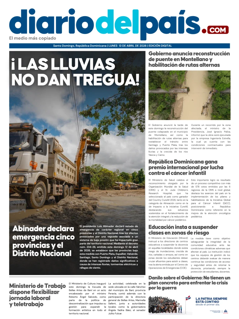 La situación climática en la República Dominicana continúa agravándose, con lluvias persistentes que mantienen al país en estado de alerta y obligaron al Gobierno a declarar emergencia en cinco provincias y el Distrito Nacional.