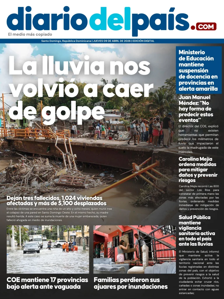 Entre los hechos destacados, se reportó el rescate con vida de un hombre que quedó atrapado en una alcantarilla en Santo Domingo Oeste, reflejando tanto el impacto de las lluvias como la rápida intervención de los organismos de emergencia.
