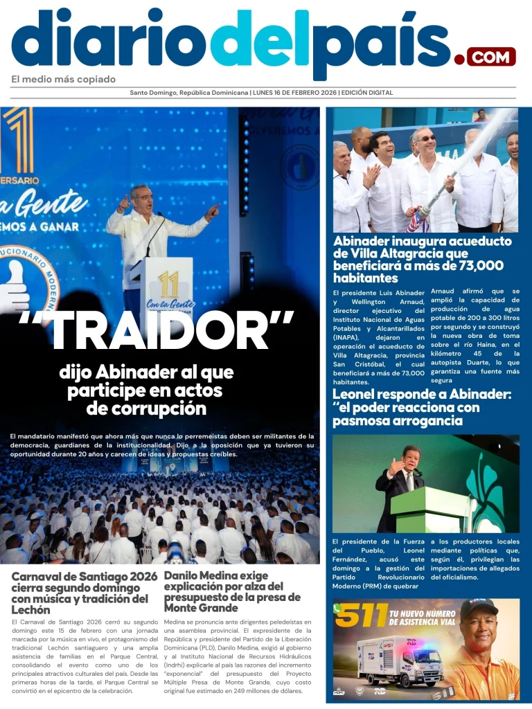 - Leer más: https://diariodelpais.com/abinader-advierte-que-la-corrupcion-traiciona-los-principios-del-prm/